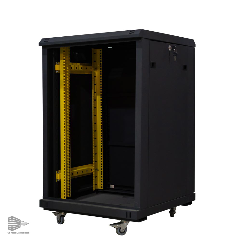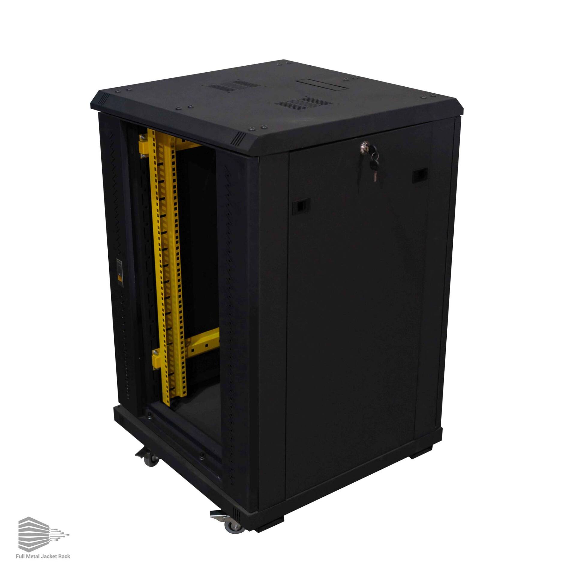 18 یونیت عمق 60 (FMJ) استاندارد 19 اینچ محفظه ورود و خروج کابل آداپتورهای قابل تنظیم در عمق درب بغل باز شو چرخ قفل شونده درب عقب لولایی